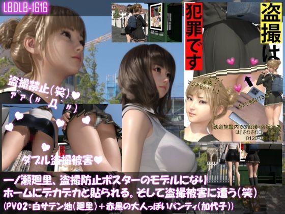 【▲100△100】一ノ瀬廻里、痴●防止ポスターのモデルになり駅のホームにデカデカと貼られる。そして盗撮被害に遭う(笑)(パンティバリエーション02:白サテン地(廻里)+赤黒の大人っぽいパンティ(加代子))