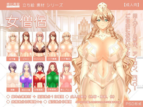 女僧侶、女戦闘員の立ち絵素材です。こちらは成人向版です。