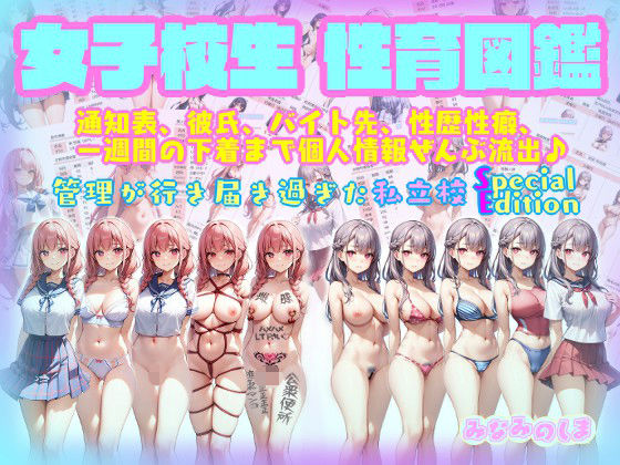 女子校生性育図鑑〜個人情報、彼氏、性歴性癖、バイト先、 通知表から一週間の下着まで全部流出♪【管理の行き届き過ぎた私立校 SpecialEdition】