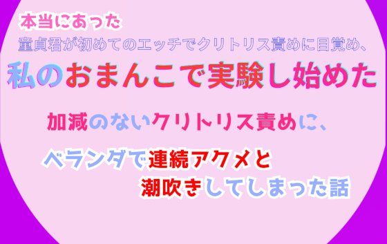 本当にあった、童貞君が初めてのエッチでクリトリス責めに目覚め、私のおまんこで実験し始めた。加減のないクリトリス責めに、ベランダで連続アクメと潮吹きしてしまった話 画像1