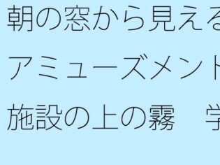 【人気作品】朝の窓から見えるアミューズメント施設の上の霧 学生時代のグラウンドを懐古【d_507260】【サマールンルン】